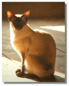 Eine alte Quatsschliesl, Siam eben. Am liebsten liegt sic im Winter unterm Ofen und geht erst bei 20 Grad mit Sonnenschein hinaus. Sie ist eine absolute Schmusekatze.